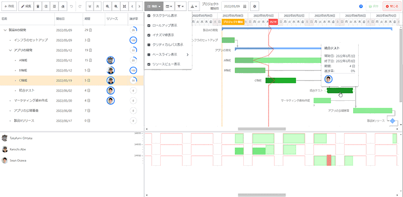 リソースの表示やクリティカルパスなどが搭載された高機能な