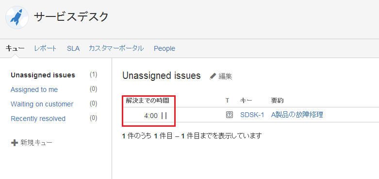 プロジェクト(サービスデスク)ごとにSLA設定画面を確認。