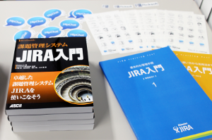 JIRA入門の本(左下)とHipChatステッカー(上)を配りました。←両方ともとても好評でした。