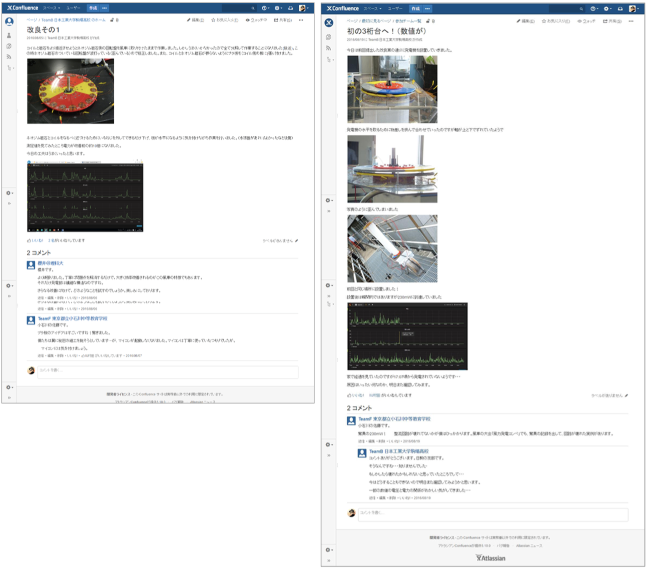 1ヶ月間の間、製作した発電機を各学校に持ち帰って実験と改良を行います。離れた場所で各チームが行う研究活動をサポートするためにConfluenceの機能が必要でした。