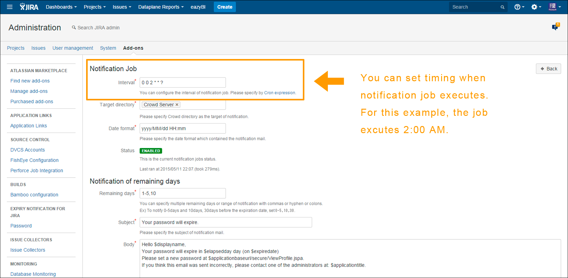 JIRAのユーザー管理にCrowdのInternal Directoryを利用している場合にユーザーへパスワード期限切れを通知するプラグインです。
