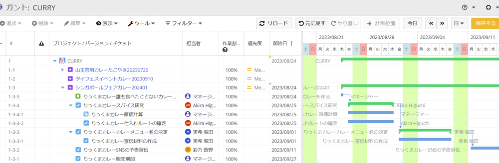 計画日付を編集するとまとめてスケジュールの移動ができます。*データセンター(DC)版では「親チケットを再計算」や「依存先を変更」機能をONにする必要があります。