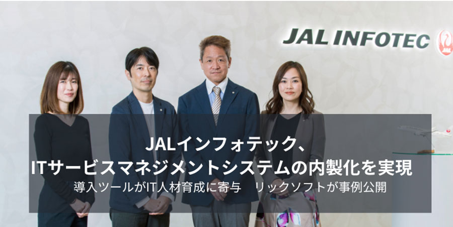 リックソフト株式会社(本社:東京都千代田区、代表取締役:大貫 浩、以下:リックソフト)は、JALグループのIT中核会社である 株式会社JALインフォテック(本社:東京都港区、代表取締役:小山 英之、以下JALインフォテック)の ITSMツール導入支援事例を2月22に公開しました。導入製品は豪アトラシアン社(日本法人:アトラシアン株式会社、以下:アトラシアン社)の Jira Service Management(ジラ・サービスマネジメント)。リックソフトが提供するeラーニングシステム、伴走型支援のサポートサービスを活用し、JALグループ3.5万人の問い合わせ窓口を一本化するシステムの内製化と自社運営を実現しました。